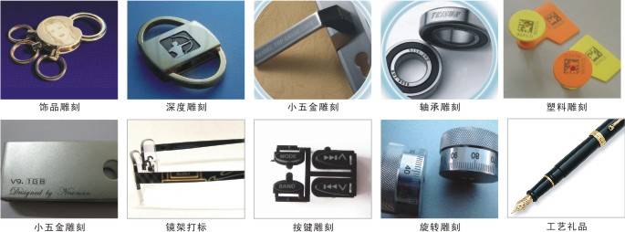 可雕刻標(biāo)記多種金屬及多種非金屬材料??稍诓讳P鋼板等高反光材料上標(biāo)記彩色圖案。特別適合應(yīng)用于一些要求精細(xì)、精度高的加工場(chǎng)合。應(yīng)用于電子元器件、集成電路(IC)、標(biāo)識(shí)標(biāo)牌、電工、電器、手機(jī)通訊、精密器械、眼鏡鐘表、首飾飾品、五金制品、工具配件、汽車(chē)配件、塑膠按鍵、建材、PVC管材、醫(yī)療器械等行業(yè)。 普通金屬及合金(銅、鐵、鋁、鎂、鋅等所有金屬),稀有金屬及合金(金、銀、鈦),金屬氧化物,特殊表面處理品(電鍍表面、鋁陽(yáng)極化、磷化),ABS料(電器用品外殼,日用品),油墨(透光按鍵、印刷制品),環(huán)氧樹(shù)脂(電子元件的封裝、絕緣層)。